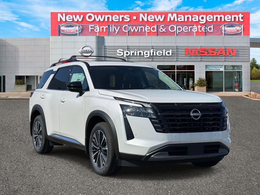 Here at Nissan City of Springfield we are a family owned and operated dealership that prides ourselves on treating each and every guest with Transparency, Efficiency, and Respect. All of our new vehicles come with not only a complimentary maintenance Come on down and see what a better way to buy a car is all about. Everest White Pearl Tricoat 2026 Nissan Pathfinder Platinum 4WD 9-Speed Automatic 3.5L V6 DOHC FREE XM RADIO FOR 3 MONTHS TRIAL AT TIME OF PURCHASE, 4WD.