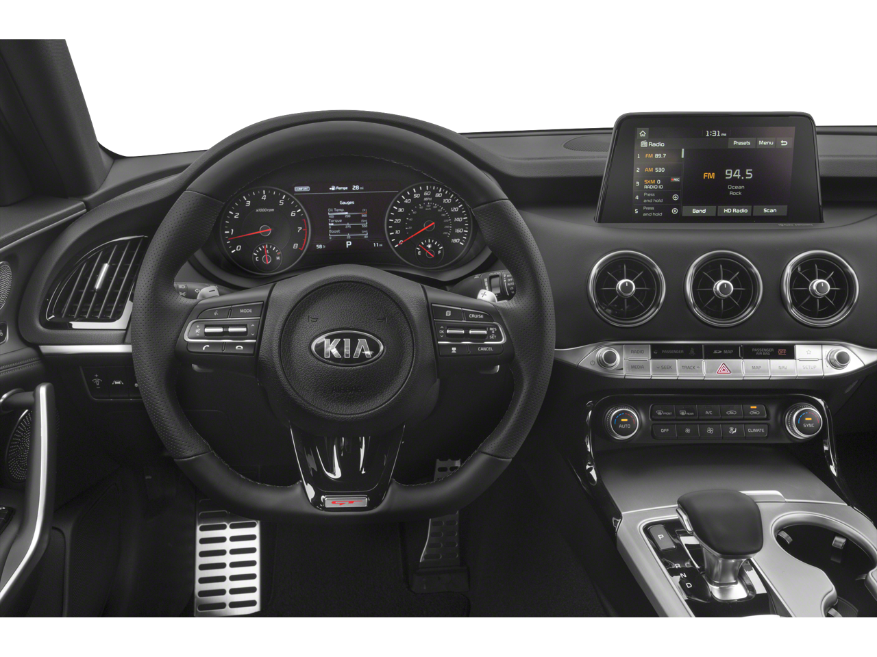 - Radio: AM/FM/MP3/HD/SiriusXM harmon/kardon Audio -inc: 720 Watts, AVN 5.0 premium navigation system, 8" color touch-screen display, 15 speaker premium surround sound including dual underseat subwoofers and ClariFi sound-enhancing technology, UVO eServices infotainment system, support for Android Auto and Apple CarPlay, USB input, Bluetooth® wireless connectivity, steering-wheel-mounted controls and voice recognition