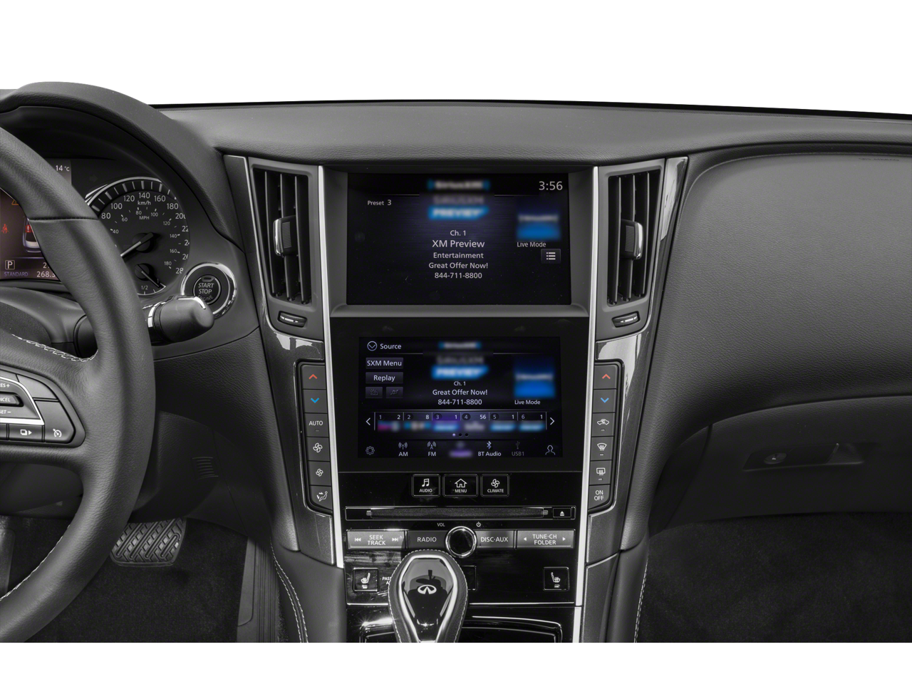 - Radio: INFINITI InTouch w/Navigation -inc: 16 speaker Bose Performance Series audio w/Bose Centerpoint simulated surround, navigation w/lane guidance, 3D building graphics, premium traffic and MapCare, voice recognition for navigation functions, including 1-shot voice destination entry, Apple CarPlay, Siri Eyes Free, Android Auto, Bluetooth® hands-free phone system w/text messaging assistant, voice recognition for audio, Bluetooth® and vehicle information, streaming audio via Bluetooth®, 2 illuminated USB connection ports (1 type A, 1 type C), auxiliary audio input, SiriusXM radio w/advanced audio features w/3-month complimentary trial, SiriusXM Traffic w/3 month complimentary trial access to real-time traffic information, SiriusXM Travel Link w/3 month complimentary trial access to weather, fuel prices, stock prices, sports scores, movie listings and parking and Wi-Fi hotspot
