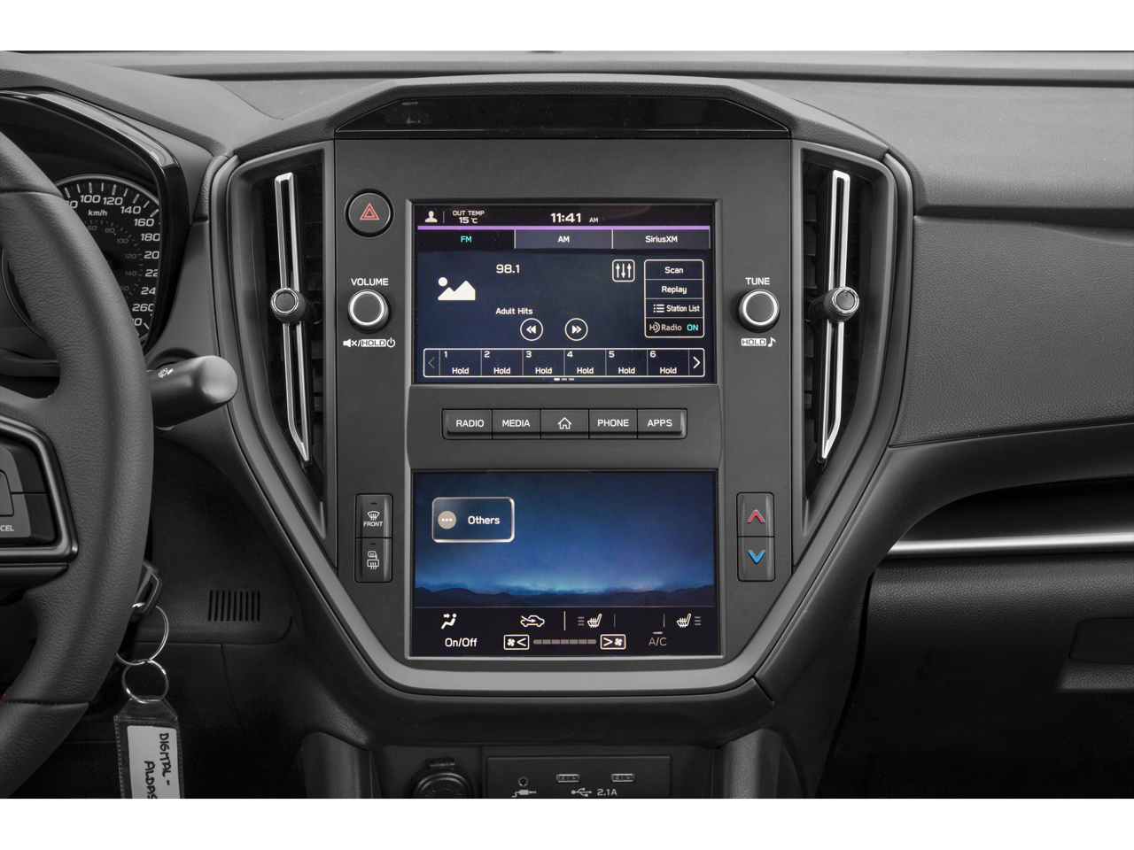- Radio: Subaru STARLINK Dual 7" Multimedia Plus Sys -inc: AM/FM stereo HD Radio, multi-touch gesture high resolution display screen, voice activated controls, Bluetooth® audio streaming connectivity, Bluetooth® hands-free phone connectivity, Bluetooth® hands-free SMS text messaging connectivity (applicable w/compatible cell phone), Near Field Communication (NFC), iPod control capability, rear-vision camera display, SiriusXM All Access radio (4 months free trial/subscription required after), SiriusXM Travel Link (4 months free trial/subscription required after), smartphone integration: Android Auto, Apple CarPlay, STARLINK cloud applications, 6 speakers and roof mounted audio and satellite antenna