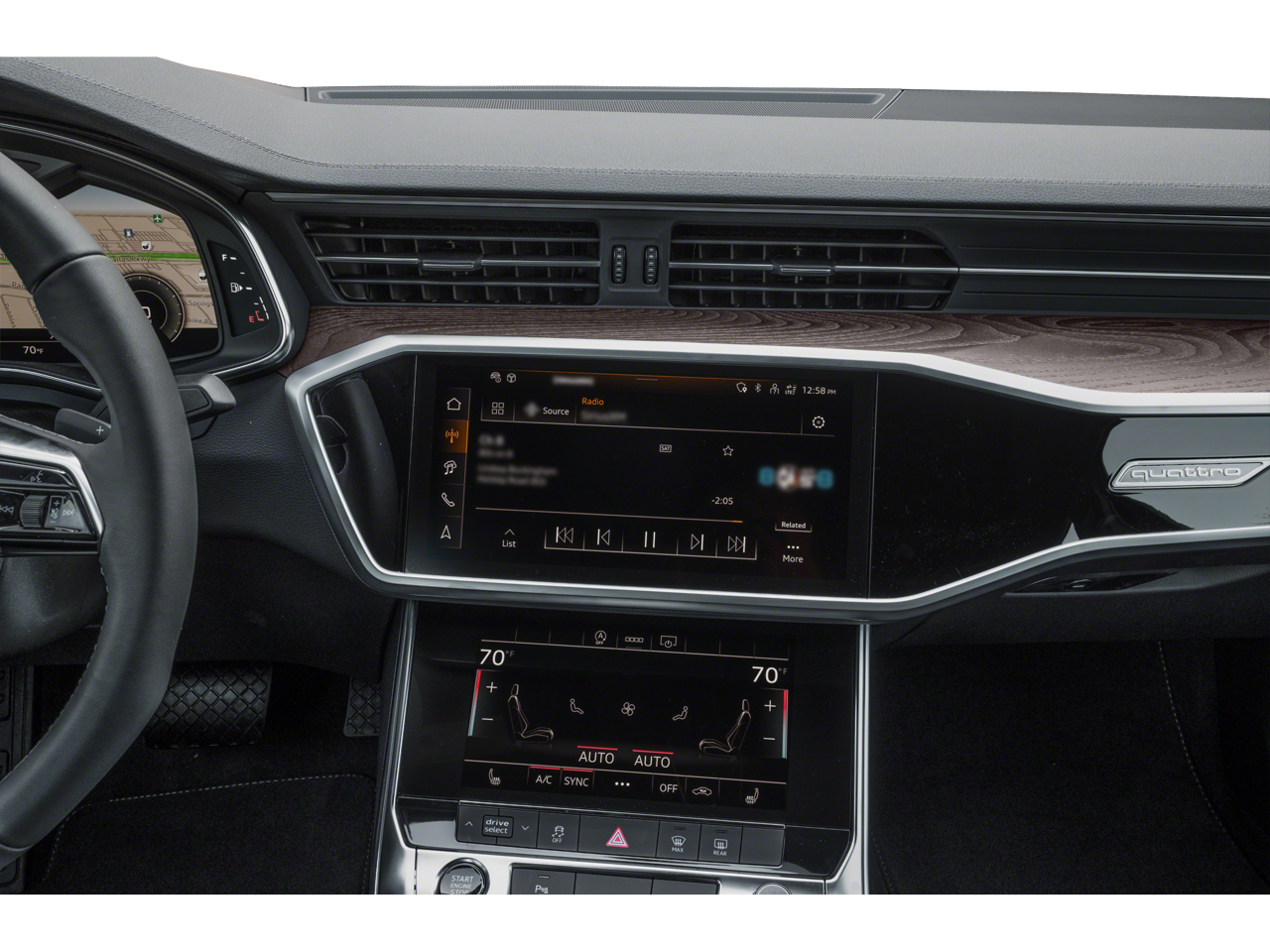 - Radio: Audi MMI Nav Plus w/MMI Touch Response -inc: Audi connect CARE w/remote start (limited time subscription, acceptance of terms required), Audi connect NAV & PLUS w/app store (limited time subscription, acceptance of terms required), Audi smartphone interface (wireless Apple CarPlay and Android Auto), Audi sound system, Bluetooth® w/audio streaming and SiriusXM w/360L (3-month Platinum plan trial subscription)